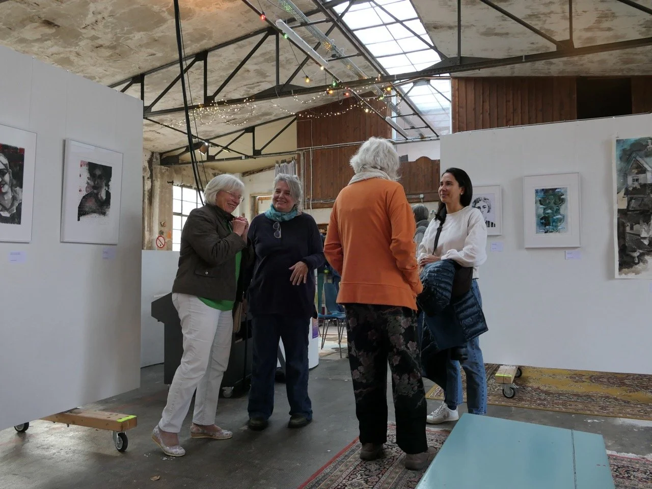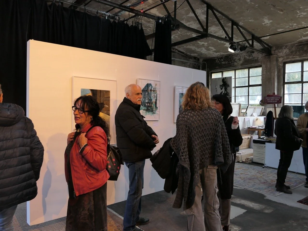 Am 4. Oktober war es dann endlich soweit, und beide hatten die Gelegenheit, die Früchte ihres gemeinsamen Schaffens einem breiteren Publikum vorzustellen. Die Tatsache, dass etwa 80% der zahlreichen Exponate während ihrer recht kurzen Zeit in der Halle 16 entstanden sind, ist Zeugnis einer intensiven Schaffensperiode. Das Interesse der Besucher war entsprechend groß, und die Mehrheit der Bilder haben im Zuge der Ausstellung ein neues Zuhause in Sulz und Umgebung gefunden, ein schönes Momento der beiden Artists in Residence 2025.