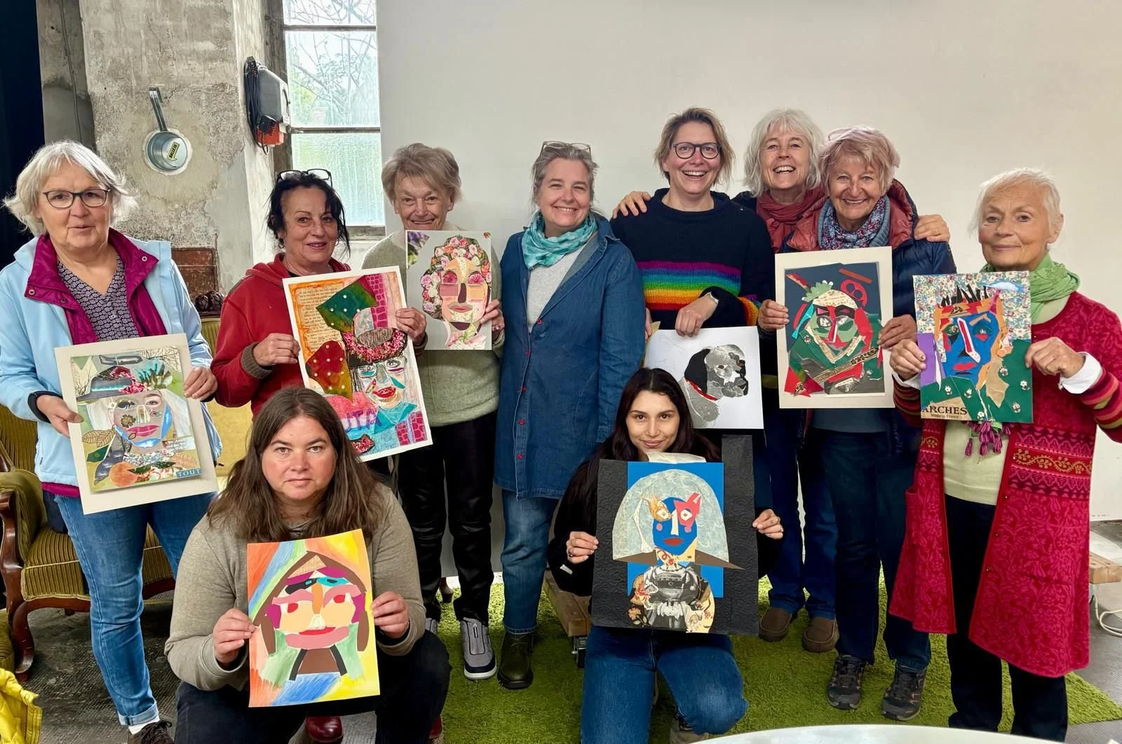 Unter dem Titel "Freundschaft, Identität und Vielfalt" haben die Künstlerinnen Carlota Daniel & Madonna Mayfield die Teilnehmerinnen des Workshops in die Collagetechnik eingeführt. Im Fokus stand das Zeichnen eines Porträts oder Selbstporträts mit Tusche und Aquarellfarben. Währenddessen setzten sie sich mit den Themen auseinander.