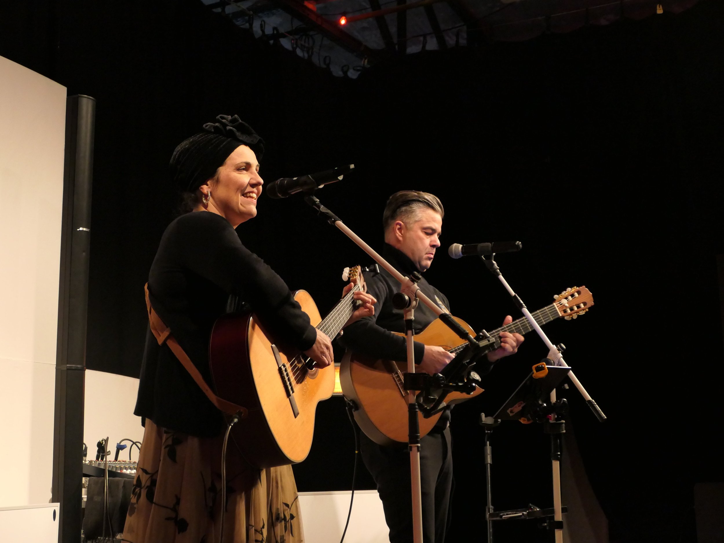 Die generelle Fahrtrichtung ist ein Gemisch aus spanischen und, sagen wir mal, schwäbischen Einflüssen. Vorgestellt haben sich die beiden, Melanie Maria Muñoz-Rodriguez, Gesang und Gitarre, und Paddy Brohammer, Gitarre und Gesang, dementsprechend als eine Spanierin, die ein wenig schwäbisch schwätzt, und ein waschechter Schwarzwälder, der mit Vollgas schwäbelt.