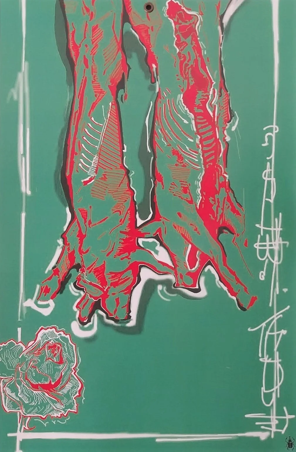Neben dem Spaß am Portraitieren hat sie vor kurzem damit begonnen sich für die Darstellung von Schlachthäusern zu interessieren. In ihren Zeichnungen hält sie die für sie selbstverständlichen Bilder von Tierkörpern fest.