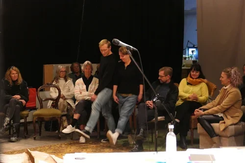 Am Abend gab es gleich eine erste öffentlich Probe zu diesem Thema, in der sie die Eindrücke des Tages szenisch und im Gespräch verarbeiteten.
