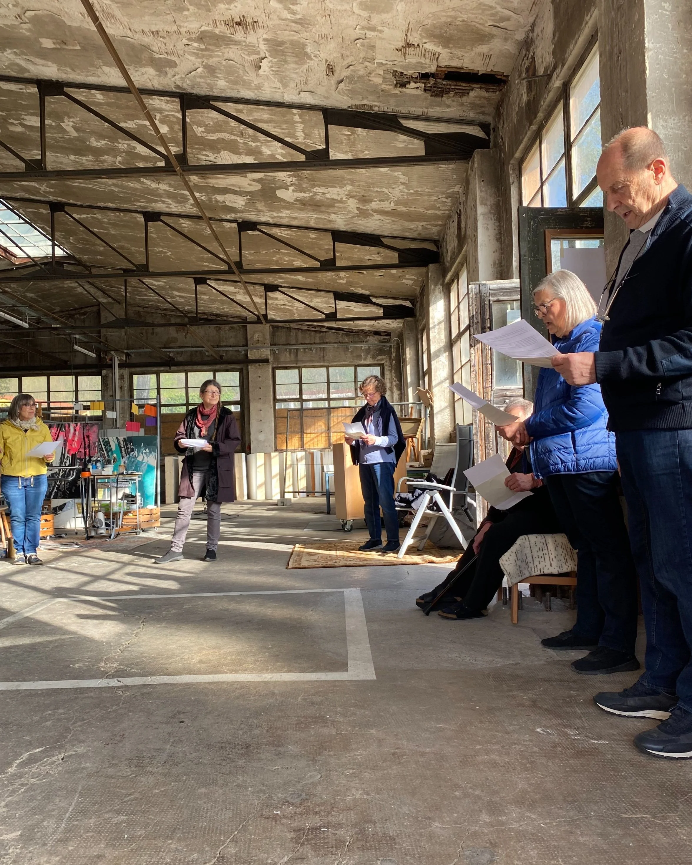 Aus dem offenen Singen ist nun ein eigenes Stück entsprungen „ come together and sing“ wurde von Christine Schneider für den Termin an jedem letzten Donnerstag des Monats komponiert. An diesem Donnerstag gehen alle die da sind bunt durch die Halle und singen aus voller Kehle. Letztes Mal haben wir den Frühling herbeigesungen. Von Kinderliedern bis hin zu bekannten Songs war alles dabei. Danach gingen wir beflügelt wieder in die Welt hinaus.