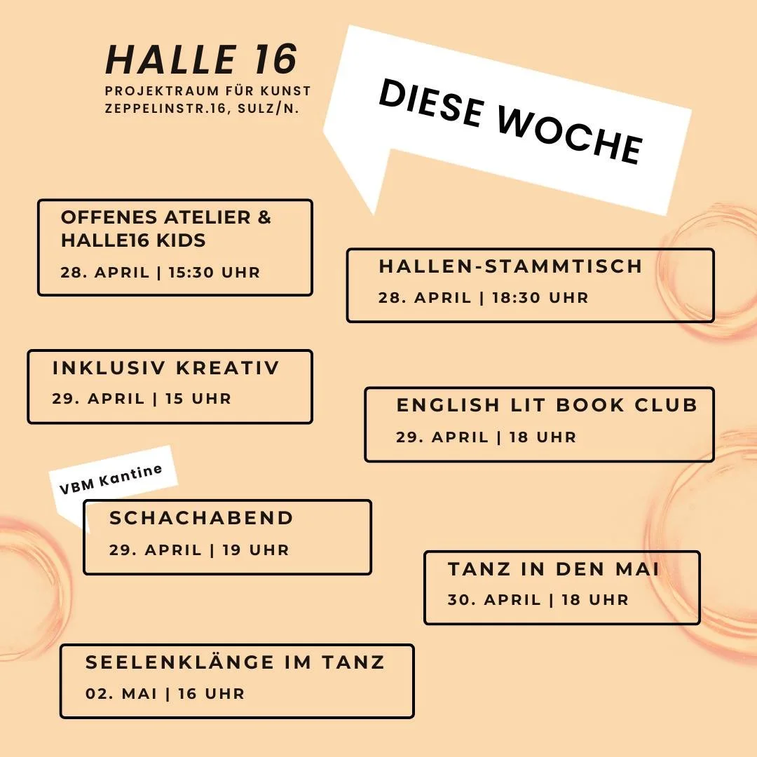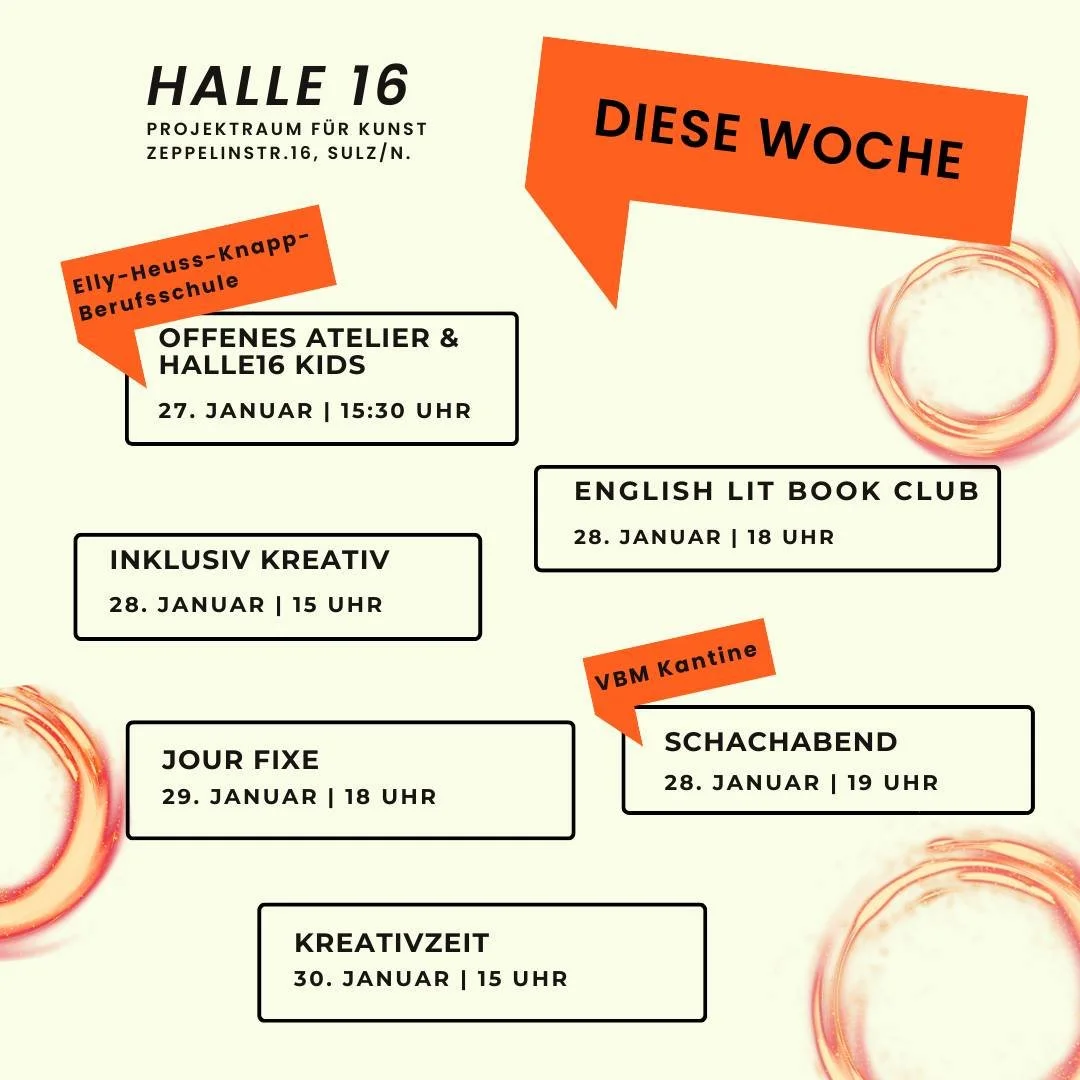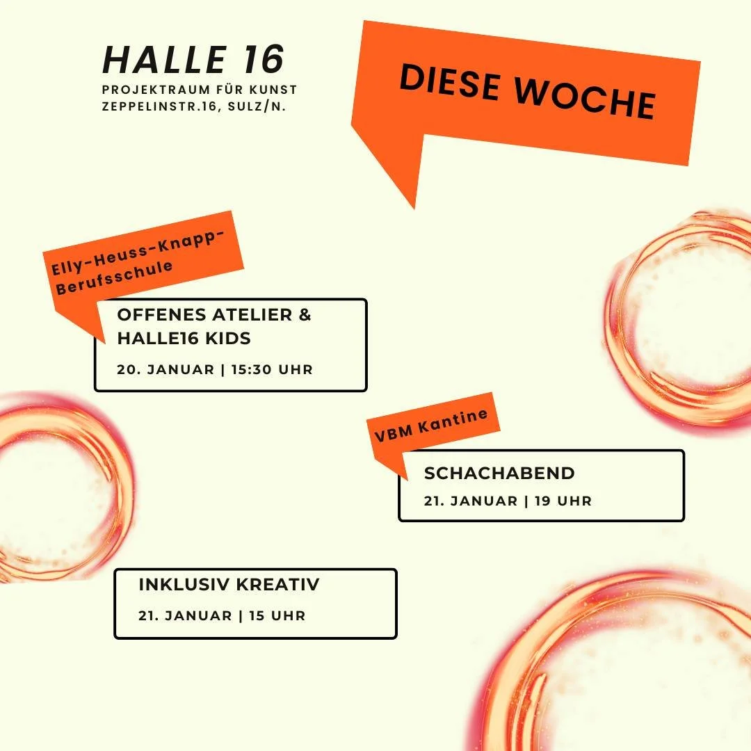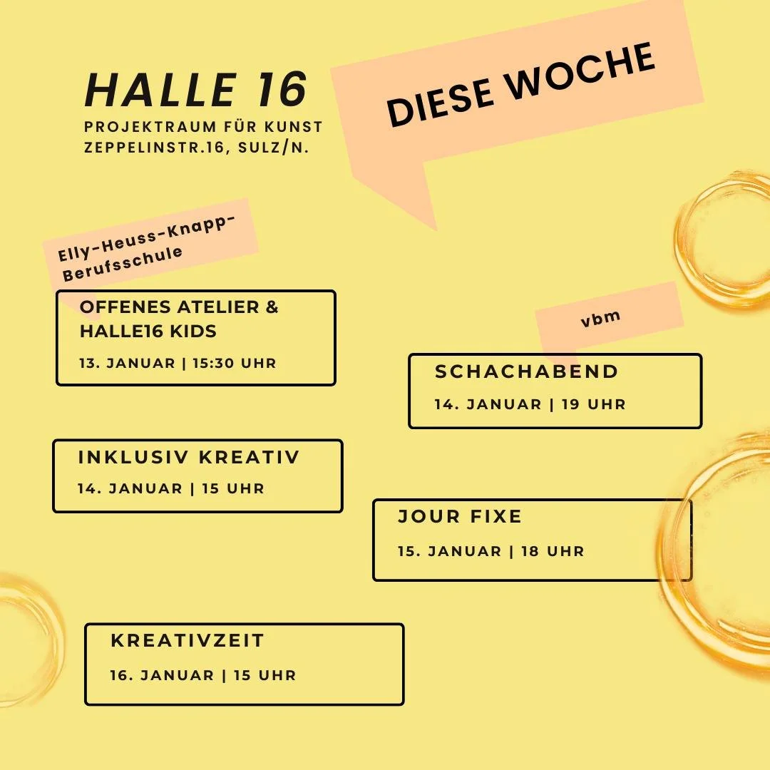 Du kannst die Halle 16 für deine künstlerische oder kulturelle Veranstaltung einfach reservieren. Klicke im Kalender auf deinen Wunschtermin und ein Fenster erscheint. Fülle alle Felder aus. Im Unterkalender kannst Du die gewünschte Veranstaltungsart festlegen (Veranstaltung, Ausstellung, Workshop, Offene Halle). Bitte beachte, dass außerhalb unserer Hallensaison keine Veranstaltungen stattfinden können.