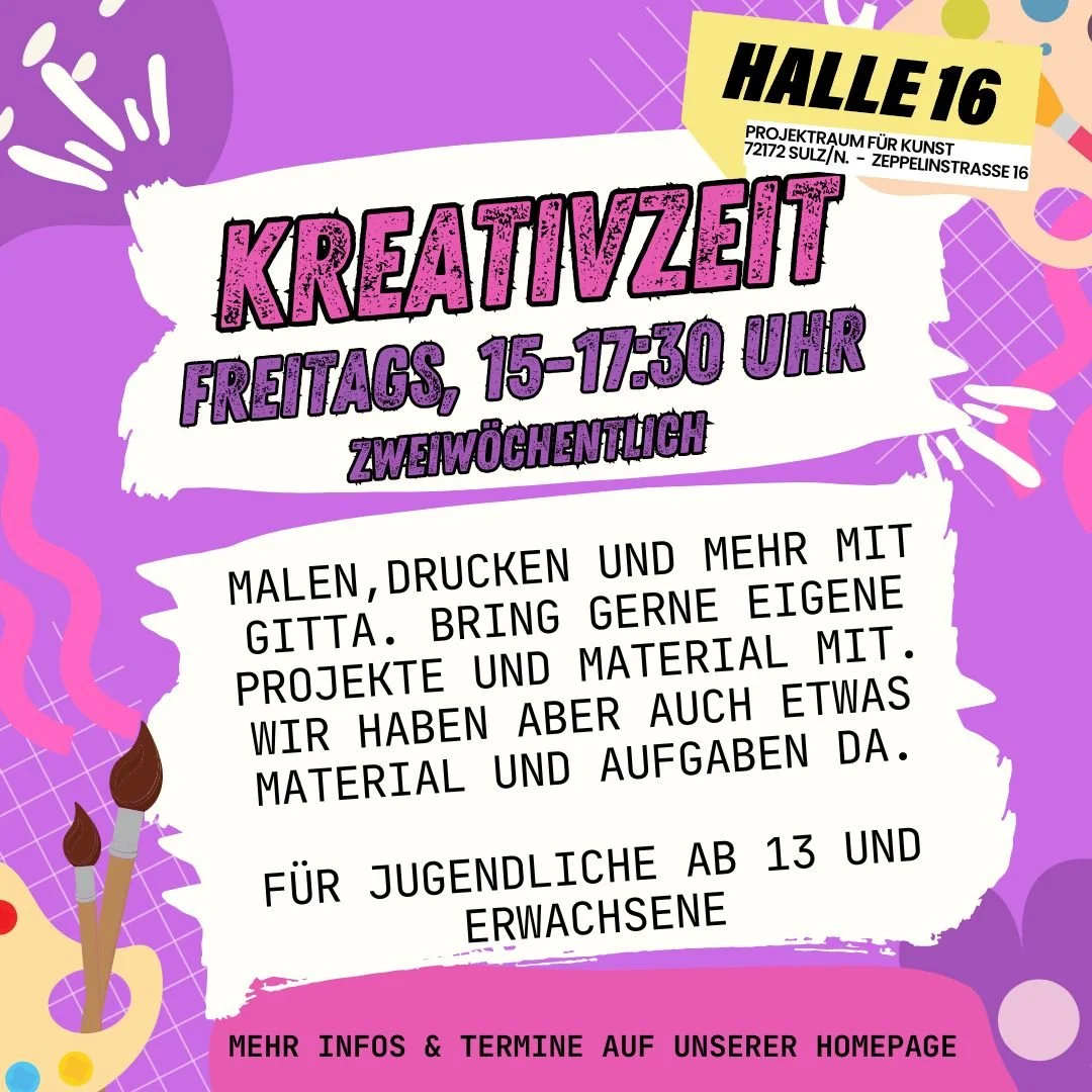 In diesem Raum sind künstlerische oder kulturelle Veranstaltungen möglich. Ihr könnt hier eigene Workshops zu verschiedenen Kunst- und Kulturthemen anbieten oder Veranstaltungen wie Lesungen, Konzerte und Ausstellungen organisieren. Wichtig ist, dass die Veranstaltungen für alle offen ist. Ausnahmen bilden Altersbeschränkungen bei manchen Angeboten.
